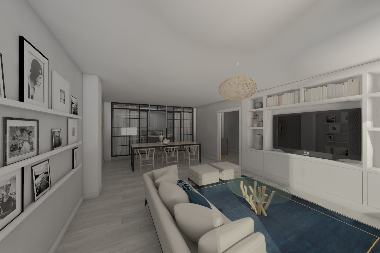 Maquete 3D de renovação de apartamento para comercialisão. A este apartamento, situado no centro de Lisboa, correspondem várias possibilidades de renovação, sendo esta imagem 3D uma delas.