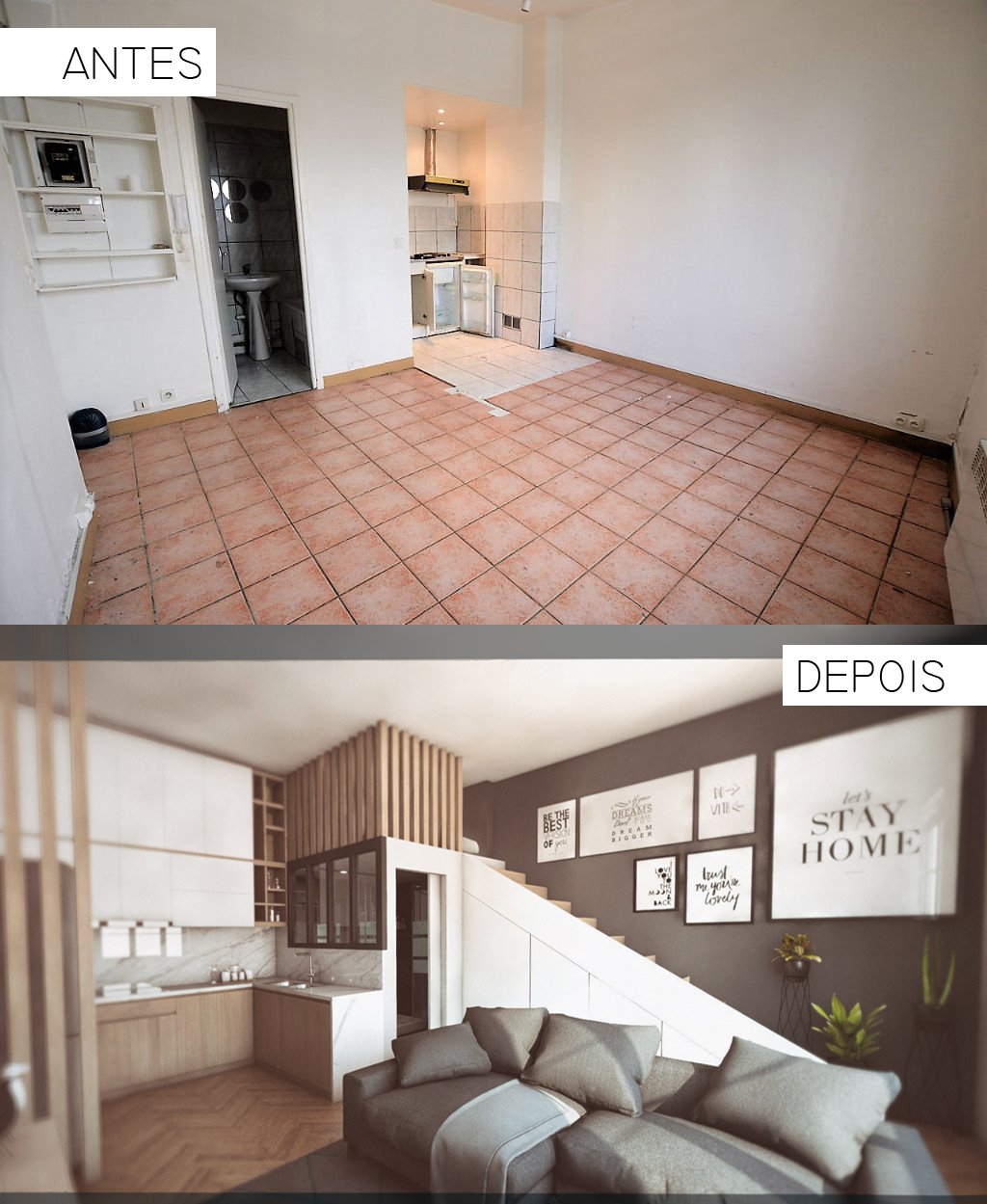 Proposta de Renovação em Maquete 3D para comercialização de estudio de 30m².